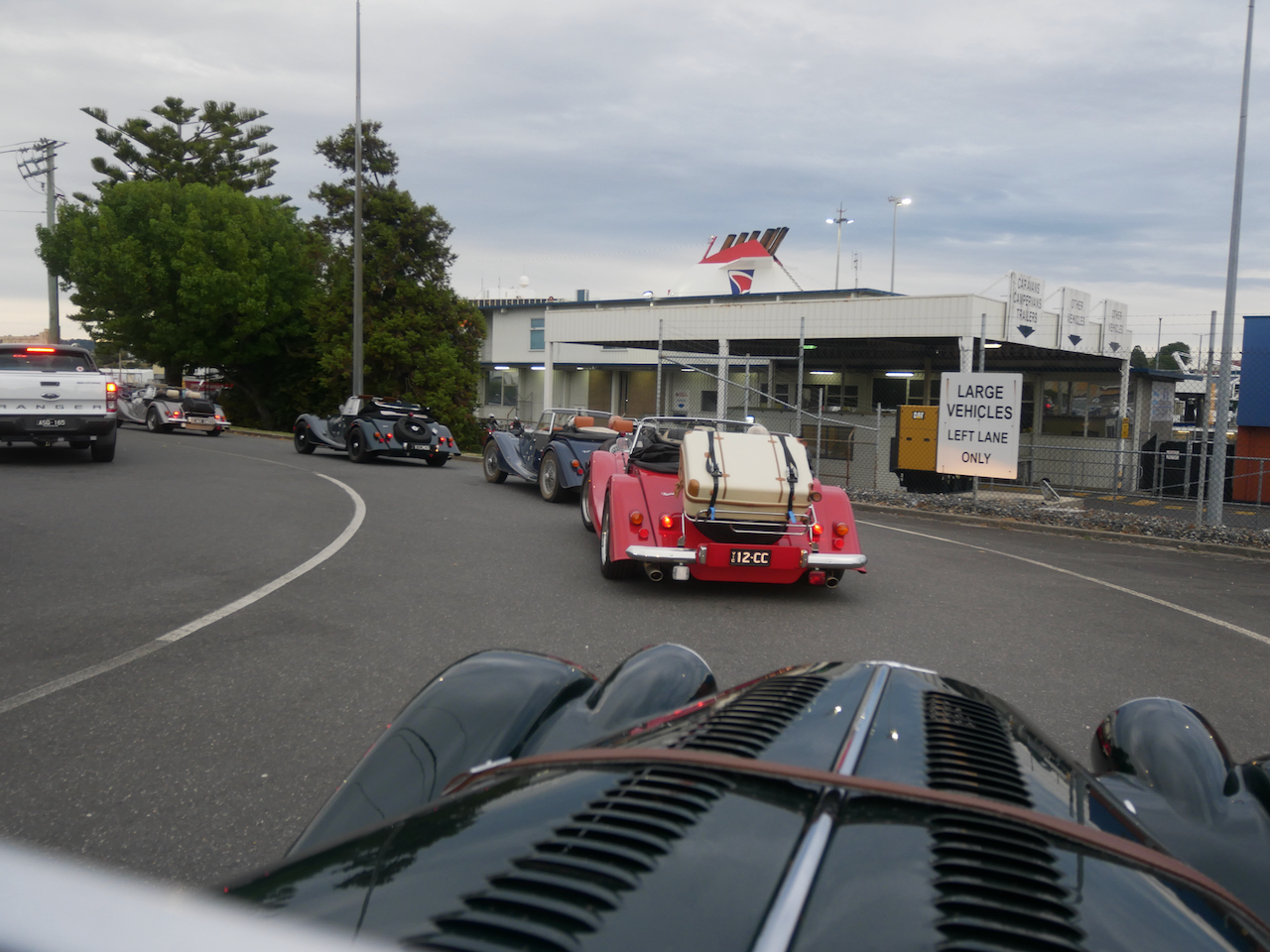Just got back from a fabulous ten day run around Tasmania with 13 Morgans. The late night departure from the new Spirit of Tasmania Geelong Terminal was not a great deal of fun. The terminal is not that easy to find, is located in a depressing area, we did not sail till around 11:30 pm and some over zealous security guards decided that since Morgans don’t have boots they had to look under the bonnets for contraband fruit. Still it was a great feeling to finally get our Morgans safely on the ship and get underway.